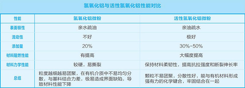 活性氫氧化鋁是采用硅烷類或鈦酸酯類偶聯劑對氫氧化鋁進行表面處理,產品細度高,粒度分布窄,阻燃效果好,白度高、容重低,在常溫下穩定,活性氫氧化鋁可改善氫氧化鋁與樹脂的結合性和加工性,使之兼具阻燃和填充雙重功能,賦予制品優良的綜合性能,因而在塑料、橡膠等復合材料中添加該產品,不僅使產品具有阻燃、消煙、自熄效果,而且抗漏電、耐電弧、耐磨性能增強。可廣泛應用于電工LDPE電纜料、橡膠、電線、電纜絕緣層、護套層、保溫材料、傳送帶等。